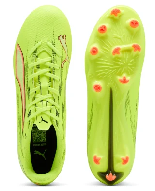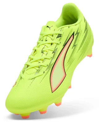 SPEEDSYSTEM potplat kombinuje napredni vlaknasti materijal, vanjski stabilizator pete i inovativan raspored krampona za maksimalan povrat energije i brže ubrzanje. Puma FastTrax kramponi, uz tri zaobljena krampna na bočnoj strani, omogućavaju sigurno kretanje i brze promjene pravca na prirodnoj travi i umjetnoj podlozi. Gornjište je izrađeno od najmanje 30% recikliranih materijala, čineći ovaj model i ekološki odgovornim izborom.