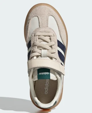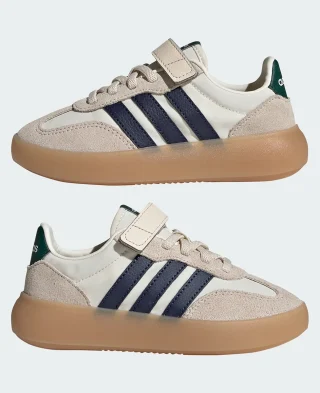 Savremene dječije T-toe patike dizajnirane su za maksimalnu udobnost i praktičnost u svakodnevnim aktivnostima. Adidas Barreda Decode model dolazi s glatkim najlonskim gornjim dijelom, obogaćenim elegantnim antilop (suede) detaljima koji daju moderan, „odrasliji“ izgled, a ipak zadržavaju razigran stil prikladan za djecu. Zahvaljujući elastičnim pertlama i dodatnoj čičak traci, obuvanje i izuvanje je brzo i jednostavno, što ih čini idealnim izborom za školu i igru. Unutrašnjost je obložena sintetičkim materijalom za dodatnu udobnost, dok gumeni đon osigurava stabilnost i dugotrajnost na različitim podlogama. Model dolazi u atraktivnoj kombinaciji boja Off White / Collegiate Navy / Collegiate Green.