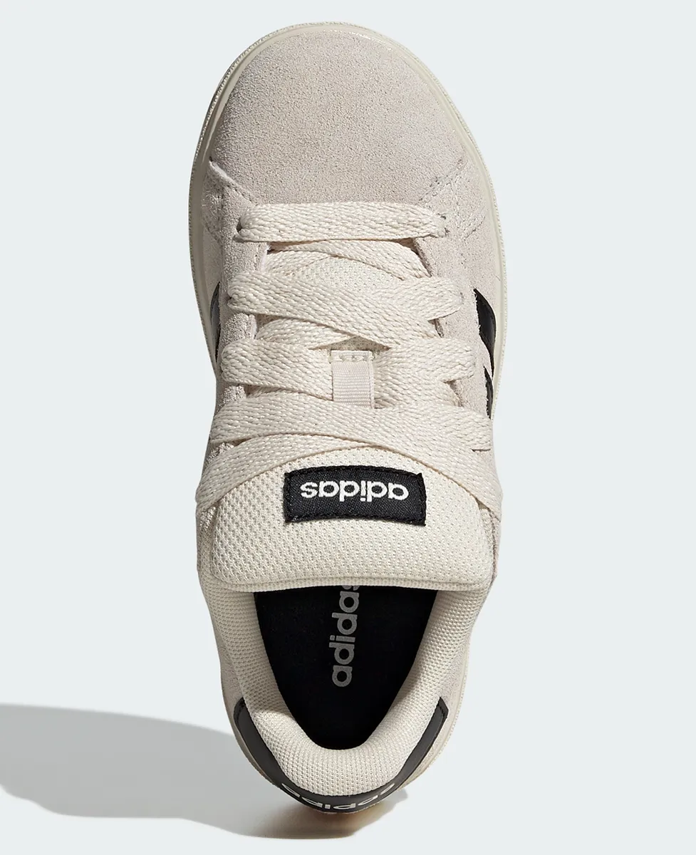Adidas Grand Court 00s K  su dječije patike inspirisane retro skates-stilom, dizajnirane za svakodnevnu udobnost i moderan izgled — idealne za igru, školu i casual nošenje.