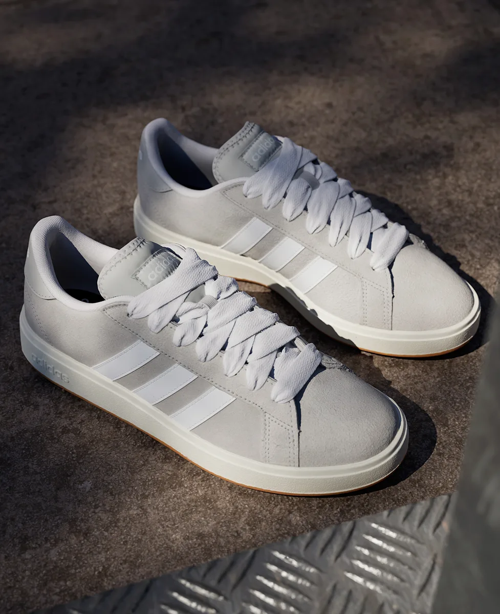 Ove Adidas Grand Court patike kombinuju klasični dizajn sa modernim detaljima, pružajući stil i udobnost u svakodnevnom nošenju. Sa regular fit krojem i čipkastim vezivanjem, savršeno prijanjaju stopalu. Gornjište od mekane brušene kože (suede) naglašava prepoznatljive 3-Stripes, dok tekstilna postava osigurava mekanu i prijatnu unutrašnjost. Gumeni cupsole đon je izdržljiv i pruža stabilnost pri hodanju.