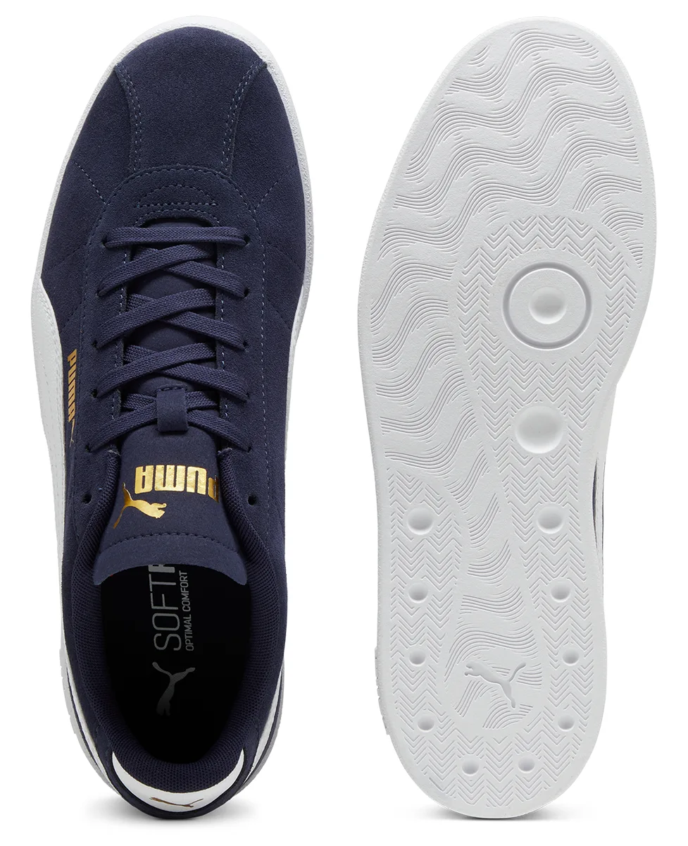 Puma Club II patike nude klasičan dizajn u tamnoplavoj boji s bijelim detaljima, idealan za svakodnevno nošenje. Izrađene su od materijala s efektom brušene kože i imaju lagan gumeni đon koji osigurava udobnost i stabilnost tokom cijelog dana.