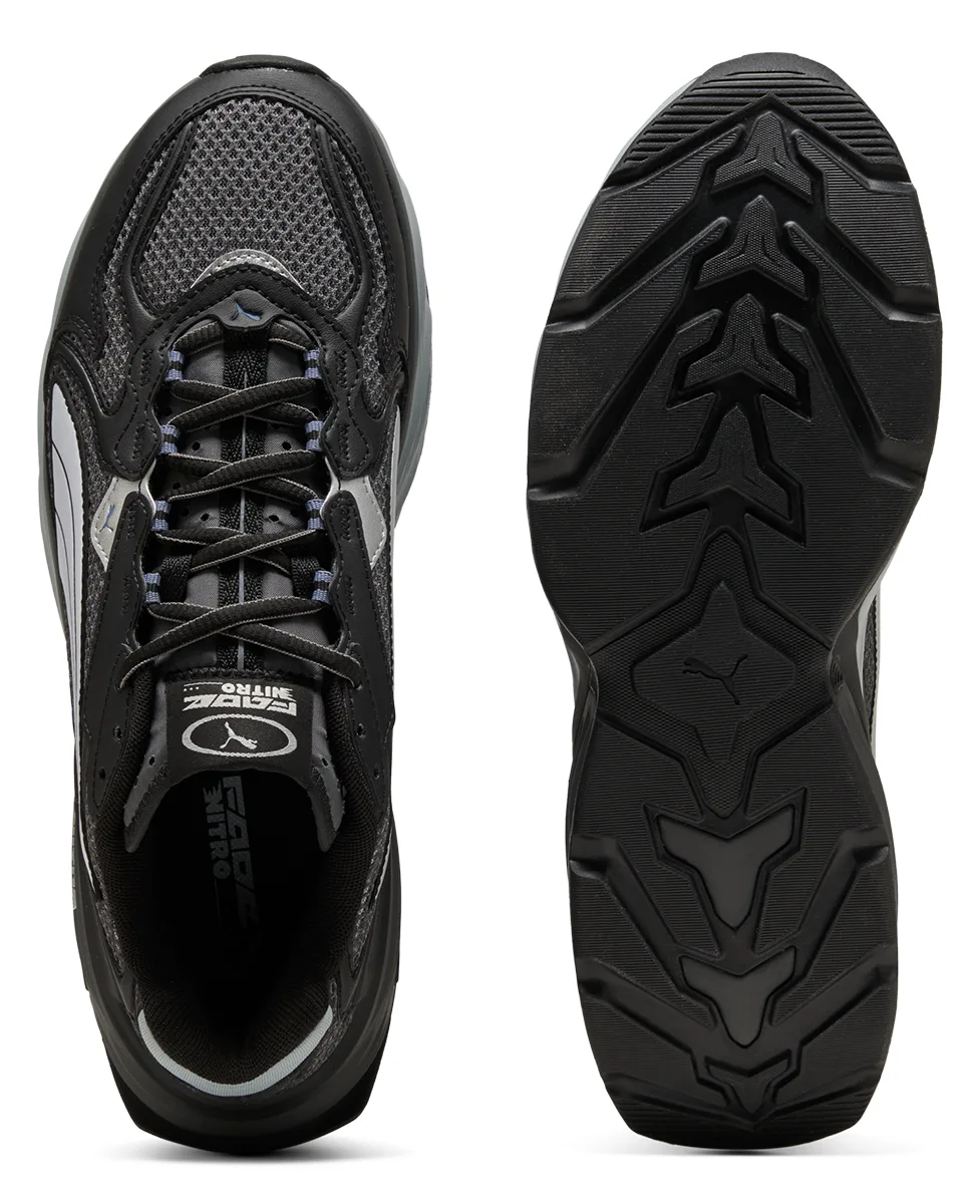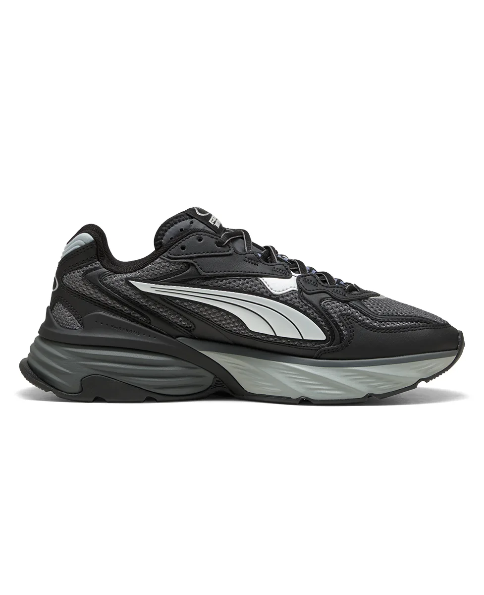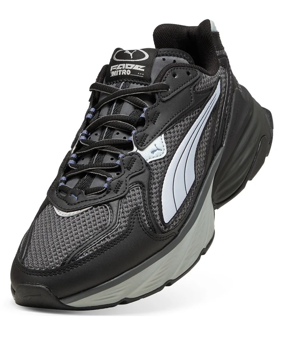 PUMA Fade patike u crnoj i sivoj kombinaciji, s metalik detaljima i skulpturiranim amortiziranim međuđonom – savršen spoj tehničkog streetwear dizajna i udobnosti.