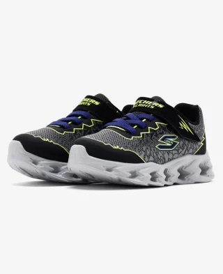 Skechers S-Lights: Vortex 2.0 su dječije svakodnevne patike sa LED svjetlima dizajnirane da u hodu “osvjetle korake”. Ovaj model ima gornjište od sintetičkih i tekstilnih materijala koje je lagano i fleksibilno, a elastične pertle i podesiva traka preko gornjeg dijela stopala omogućavaju brzo i jednostavno obuvanje bez vezanja klasičnih pertli — što ih čini praktičnim za najmlađe.Unutrašnjost patika opremljena je jastučićem za stopalo koja pruža dodatnu udobnost i amortizaciju tokom hodanja, a fleksibilni gumeni potplat daje dobru trakciju i stabilnost na različitim podlogama. Najatraktivnija karakteristika modela su LED svjetla u međuđonu, koja se aktiviraju korakom ili uz On/Off dugme u većim veličinama, dodajući zabavan element tokom igre i nošenja.