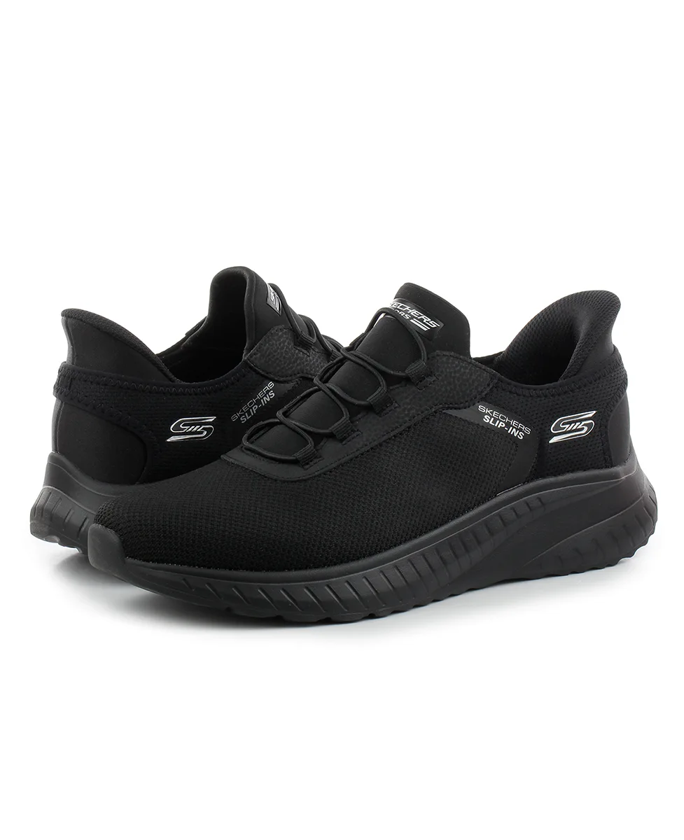 Skechers Hands Free Slip-ins®: BOBS Sport™ Squad Chaos – Tough Walk su udobne slip-on patike sa mrežastim i sintetičkim gornjim dijelom i rastezljivim pertlama. Exclusive Heel Pillow™ i Memory Foam™ uložak pružaju stabilnost i vrhunsku udobnost, dok fleksibilan potplat osigurava siguran korak.
