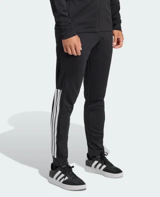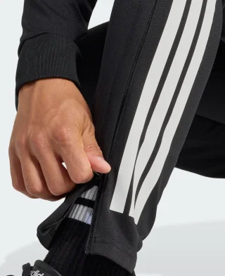 Donji dio trenerke sa regularnim krojem i uskim, suženim nogavicama za moderan sportski izgled. Climacool tehnologija održava svježinu i suhoću, dok elastični pojas sa vezicom i zip džepovi osiguravaju udobnost i praktičnost. Napravljen od prozračnog, 100% recikliranog poliestera.