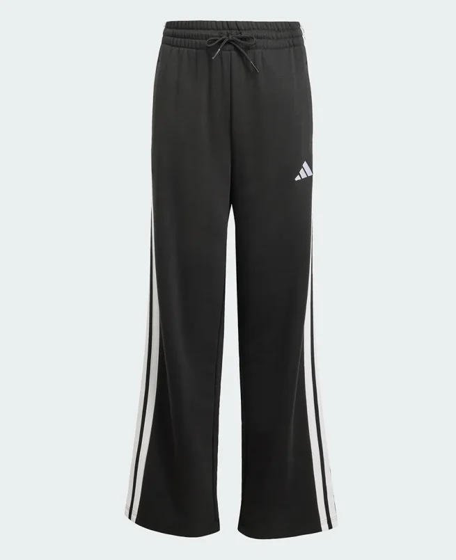 Adidas ESSENTIALS PANTS – dječje crne sportske pantalone u French Terry tkanini (55% pamuk / 36% reciklirani poliester / 9% viskoza). Udoban regular fit, elastični pojas s vezicom i bočni džepovi čine ih praktičnim izborom za svaki dan.