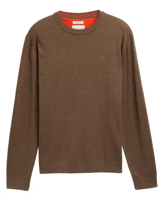 Osnovni muški džemper u jednobojnom melanž uzorku, ukrašen diskretnim vezenim logotipom u tonu na grudima. Izrađen u regular fit kroju, sa dugim rukavima i rebrastim manžetnama na rubu i rukavima, pruža klasičan i svestran izgled koji se lako uklapa u svakodnevne kombinacije.