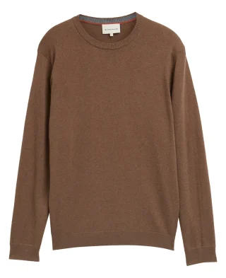 Osnovni muški džemper u jednobojnom melanž uzorku, izrađen od mekane pamučne tkanine s dodatkom kašmira koji pruža poseban osjećaj topline i udobnosti.