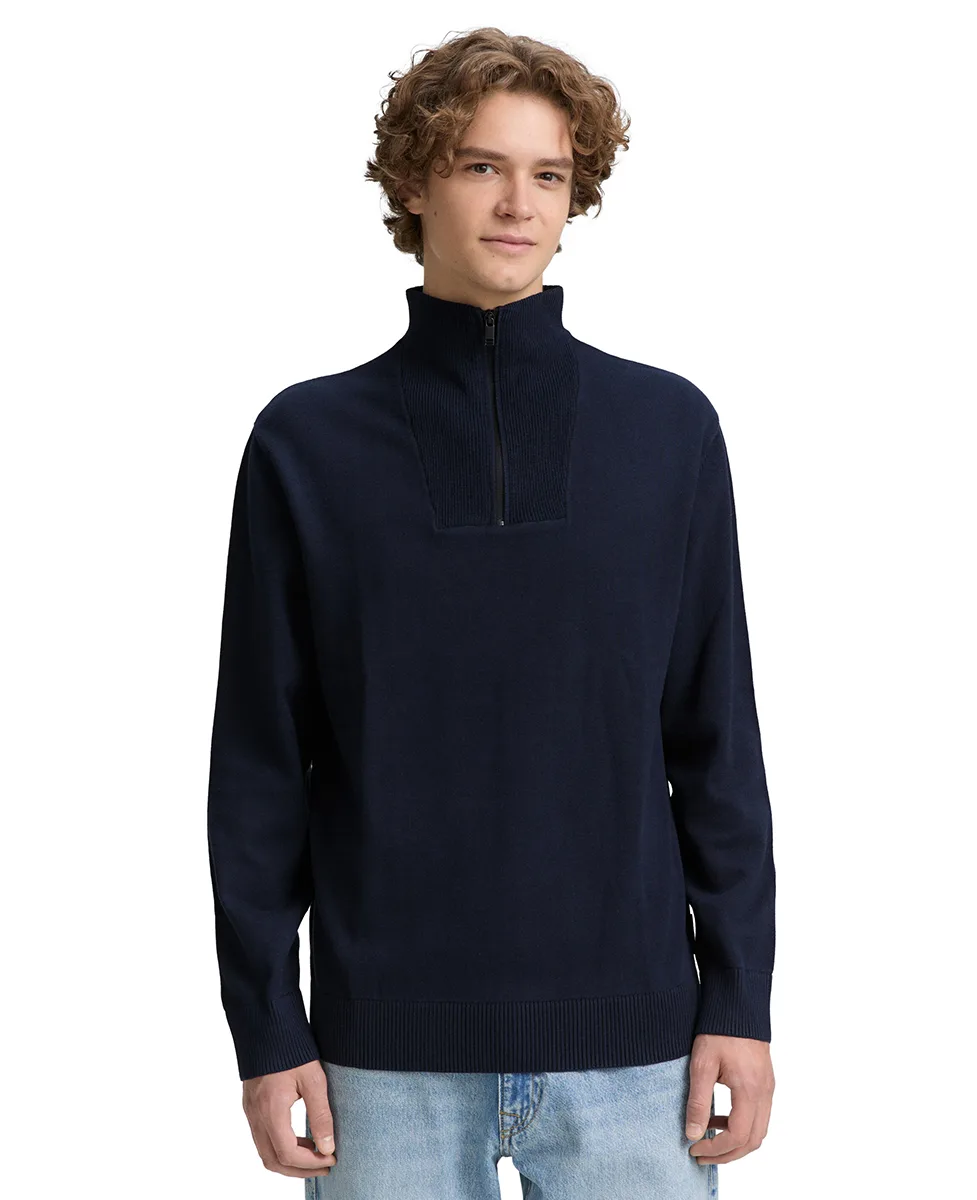 Elegantni Tom Tailor muški džemper s Troyer kragnom i rajsferšlusom, izrađen od 100% pamuka za maksimalnu udobnost i svakodnevni stil.