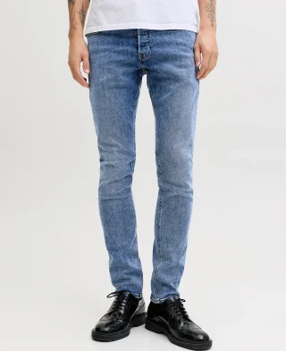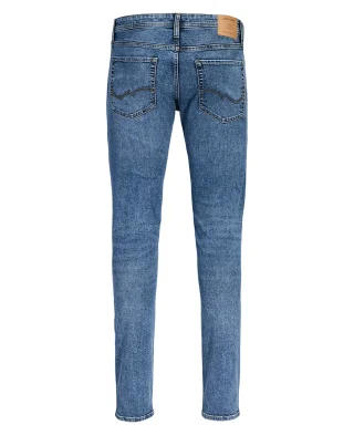 Muške slim fit jeans hlače iz kolekcije Original brenda Jack & Jones sa nižim strukom i uskim krojem kroz nogavicu za moderan izgled. Stonewash obrada daje blago izblijedjeli efekat, dok comfort stretch materijal (66% organski pamuk, 28% reciklirani poliester, 5% reciklirani pamuk, 1% elastin) osigurava udobnost i slobodu pokreta.