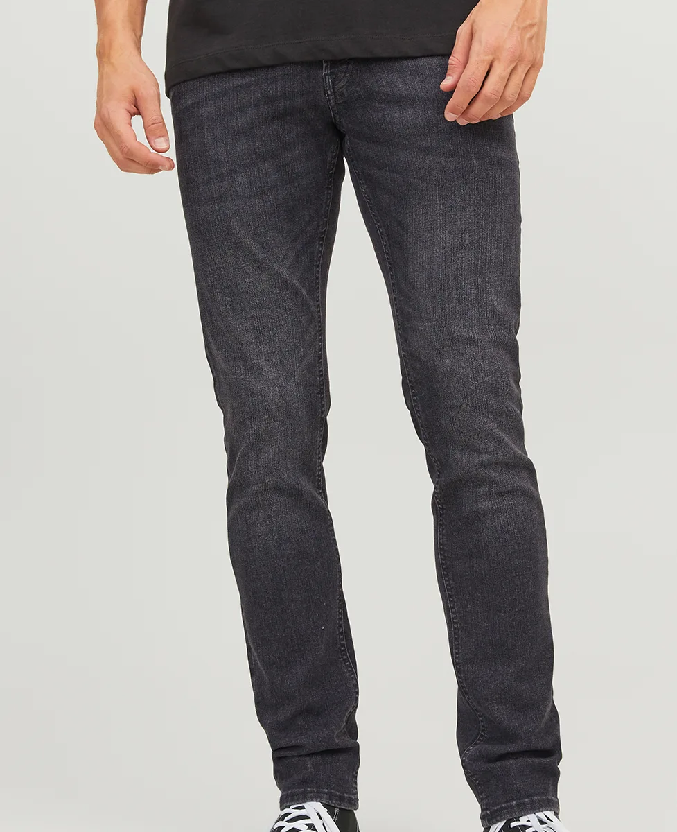 Muške Jack & Jones slim fit hlače sa nižim strukom i klasičnih pet džepova. Materijal: 64% pamuk, 29% reciklirani poliester, 5% reciklirani pamuk, 2% elastin. Stonewash crni denim efekt daje moderan, blago iznošen izgled, dok kroj prati liniju tijela za udoban casual stil.
