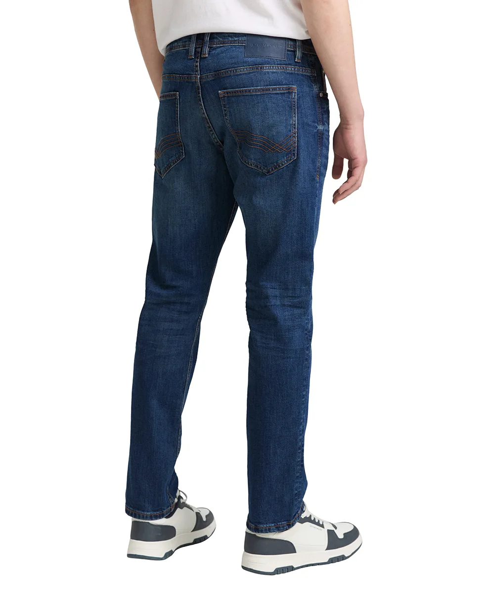 Klasičan five-pocket dizajn uključuje bočne džepove sprijeda, zadnje džepove i mali džepić za sitnice. Hlače se zatvaraju pomoću rajsferšlusa i dugmeta, a završna obrada u mid stone wash nijansi daje im moderan, blago ispran denim izgled pogodan za svakodnevne i casual kombinacije.