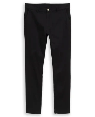 Muške chino hlače TTTRAVIS Slim Fit u crnoj boji. Slim kroj, srednje visok struk i blago rastezljiv pamuk (98% pamuk, 2% elastin) za veću udobnost. Bočni džepovi sprijeda, ravni džepovi pozadi, zatvaranje na dugme i rajsferšlus. Idealne za svakodnevni i smart-casual stil.