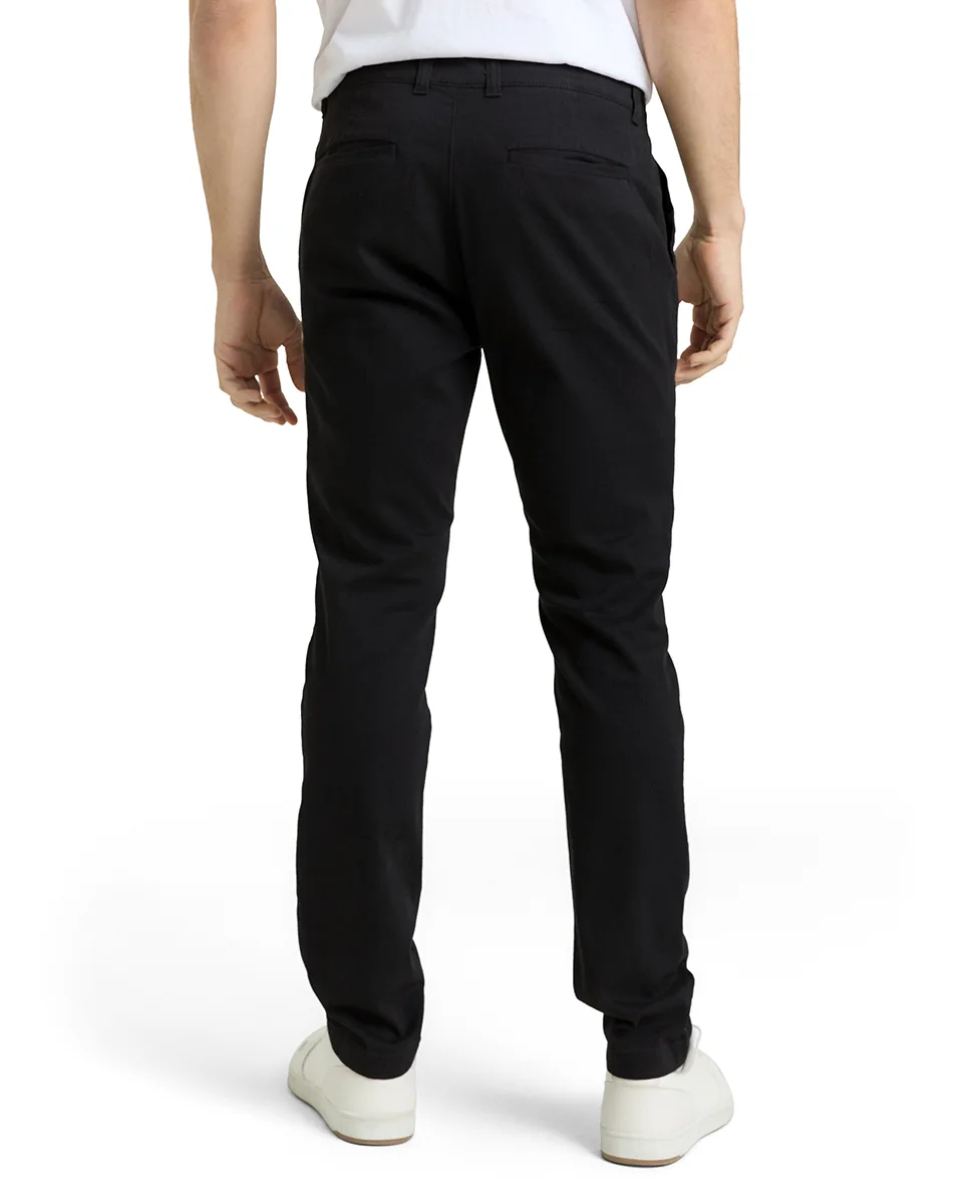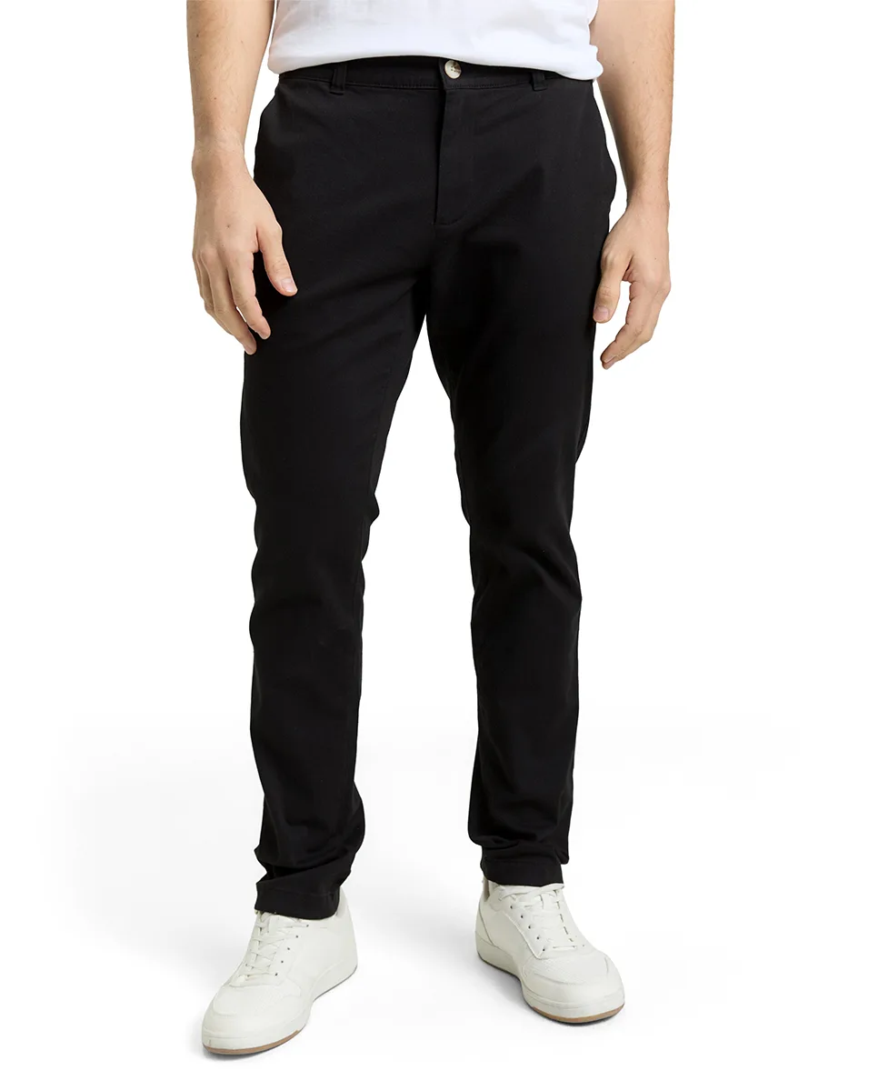 Muške chino hlače TTTRAVIS Slim Fit u crnoj boji. Slim kroj, srednje visok struk i blago rastezljiv pamuk (98% pamuk, 2% elastin) za veću udobnost. Bočni džepovi sprijeda, ravni džepovi pozadi, zatvaranje na dugme i rajsferšlus. Idealne za svakodnevni i smart-casual stil.