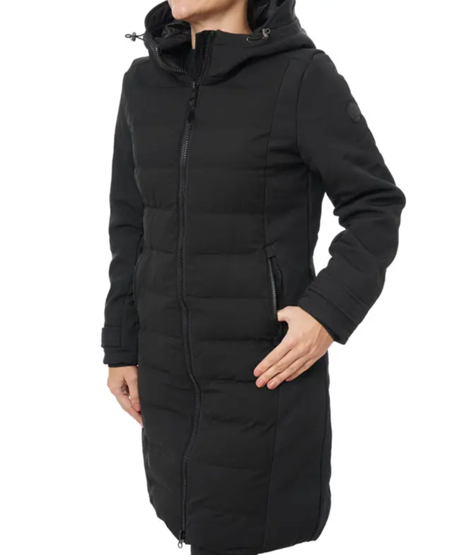 Ženska Eastbound jakna u crnoj boji odlikuje se dugim, elegantnim krojem i modernim dizajnom, pružajući toplinu i udobnost tokom hladnih dana.