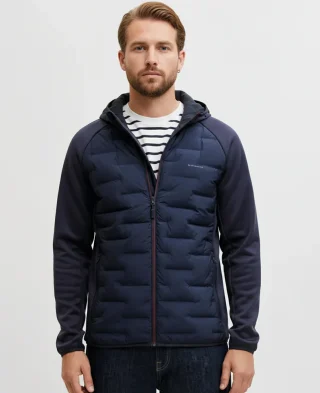 Moderna Jack & Jones hybrid jakna sa kombinacijom različitih materijala na tijelu i rukavima daje joj atraktivan i funkcionalan izgled.