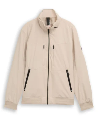 Jakna ima kapuljaču koja se može sklopiti i sakriti u kragnu, što joj daje čist i urban izgled. Opremljena je prsnom džepovima, bočnim džepovima sprijeda te dodatnim unutrašnjim džepom, idealnim za sigurno odlaganje mobilnog telefona, ključeva ili novčanika. Logo bedž na rukavu daje prepoznatljiv TOM TAILOR potpis.