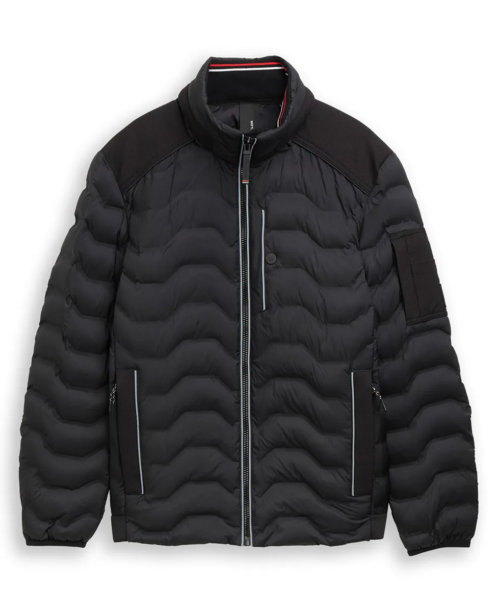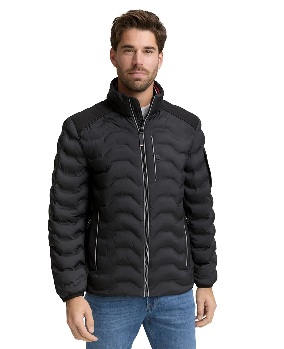 Lagano prošivena hibridna jakna Tom Tailor u crnoj boji, izrađena od 100% REPREVE® poliestera. Regular fit kroj, softshell materijal i kapuljača koja se može sakriti u kragnu čine je idealnom za prijelazne sezone. Više praktičnih džepova i moderan dizajn za svakodnevno nošenje.