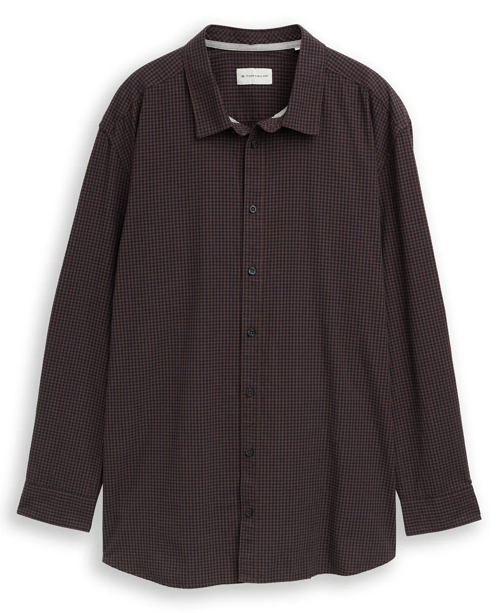 Ova Tom Tailor muška košulja u smeđem Vichy uzorku izrađena je od 100% pamuka, što pruža udobnost i prozračnost. Ima regular fit kroj, Kent kragnu i kopčanje na dugmad. Dostupna je u plus veličinama, do 5XL, idealna za svakodnevne i ležerne kombinacije.
