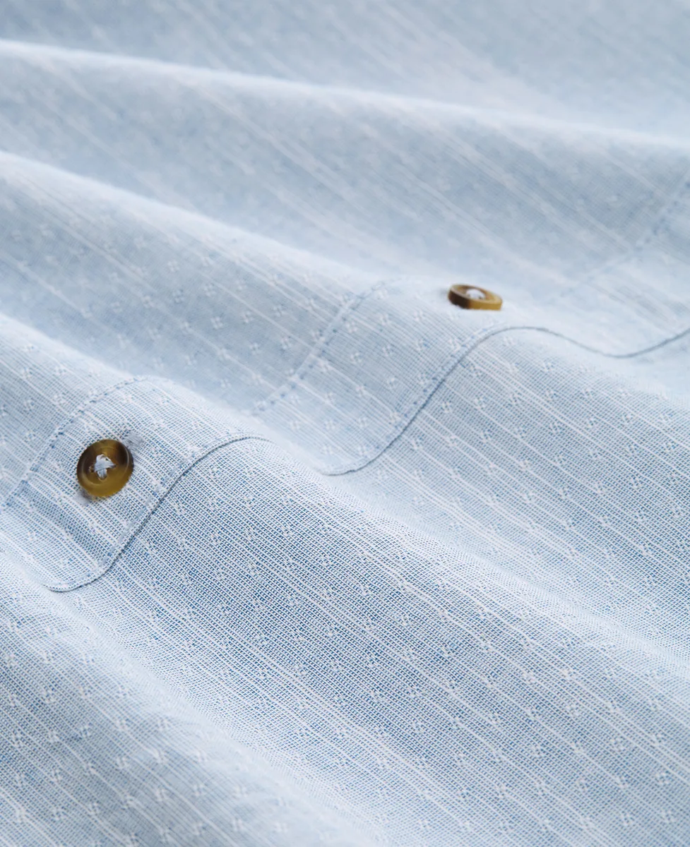 Muška košulja regular fit kroja izrađena je od 100% pamuka, uključujući organski pamuk, sa modernom dobby teksturom. Posjeduje Kent kragnu, džep na grudima i turn-up funkciju rukava za prilagođavanje dužine. Idealna je za poslovne i elegantno-ležerne kombinacije.