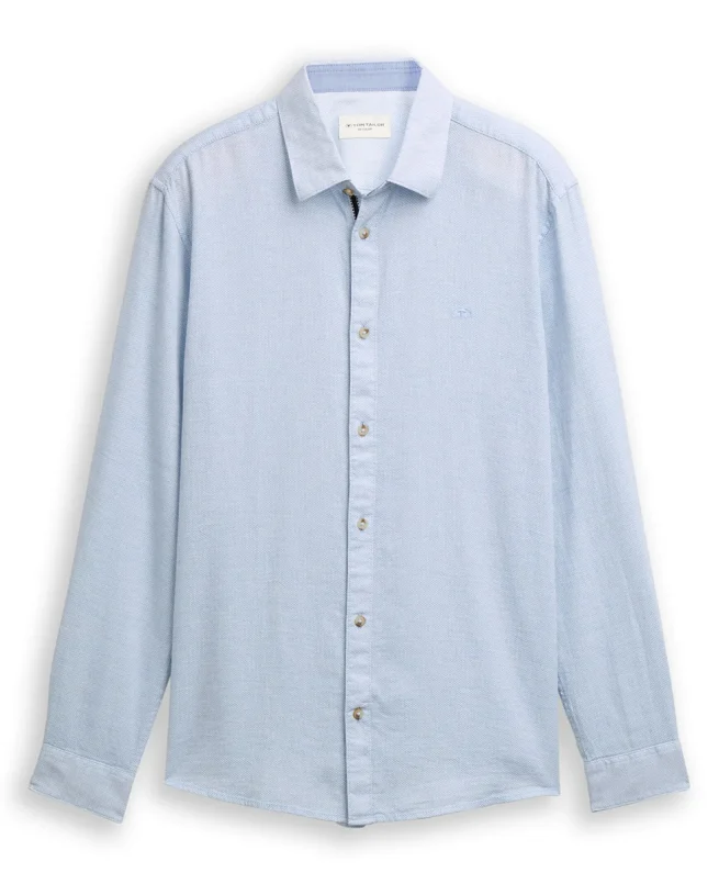 Muška košulja regular fit (ravnog) kroja izrađena je od 100% pamuka s kvalitetnom dobby strukturom koja daje diskretnu teksturu i moderan izgled. Model dolazi u blue petrol nijansi s melange efektom te je upotpunjen malim vezenim logom na prsima. Ima klasični Kent ovratnik, duge rukave i kopčanje na dugmad, što je čini odličnim izborom za poslovne i smart casual kombinacije. Lagana i prozračna tkanina osigurava udobnost tijekom cijelog dana.
