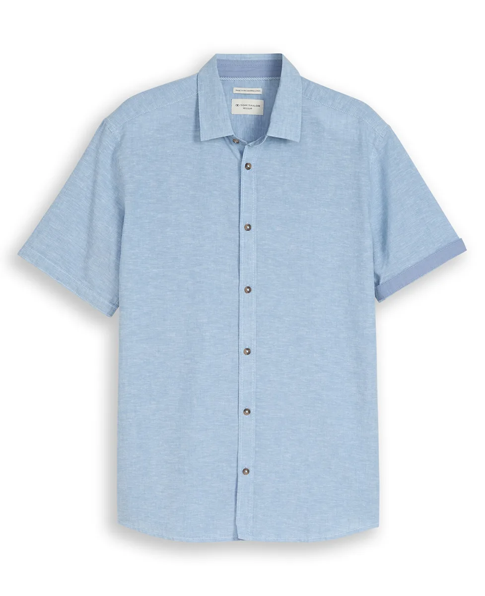 Tom Tailor muška košulja u regular fit kroju izrađena je od kvalitetne mješavine 55% lana i 45% pamuka, što je čini savršenim izborom za tople proljetne i ljetne dane. Zahvaljujući udjelu lana, materijal je lagan, prozračan i pruža prirodan osjećaj hlađenja, dok pamuk doprinosi mekoći i ugodnosti pri nošenju. Poplin tkanina daje košulji gladak i uredan izgled, dok jednostavan dizajn u bleached blue chambray nijansi omogućava lako kombinovanje.