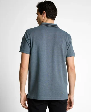 Muška regular fit polo majica sa džepom na rukavu, plavo-sive melange boje. Izrađena od piqué pamuka sa elastanom za udobnost. Klasično zatvaranje na dugmad i polo ovratnik, idealna za casual i poslovno-casual kombinacije.