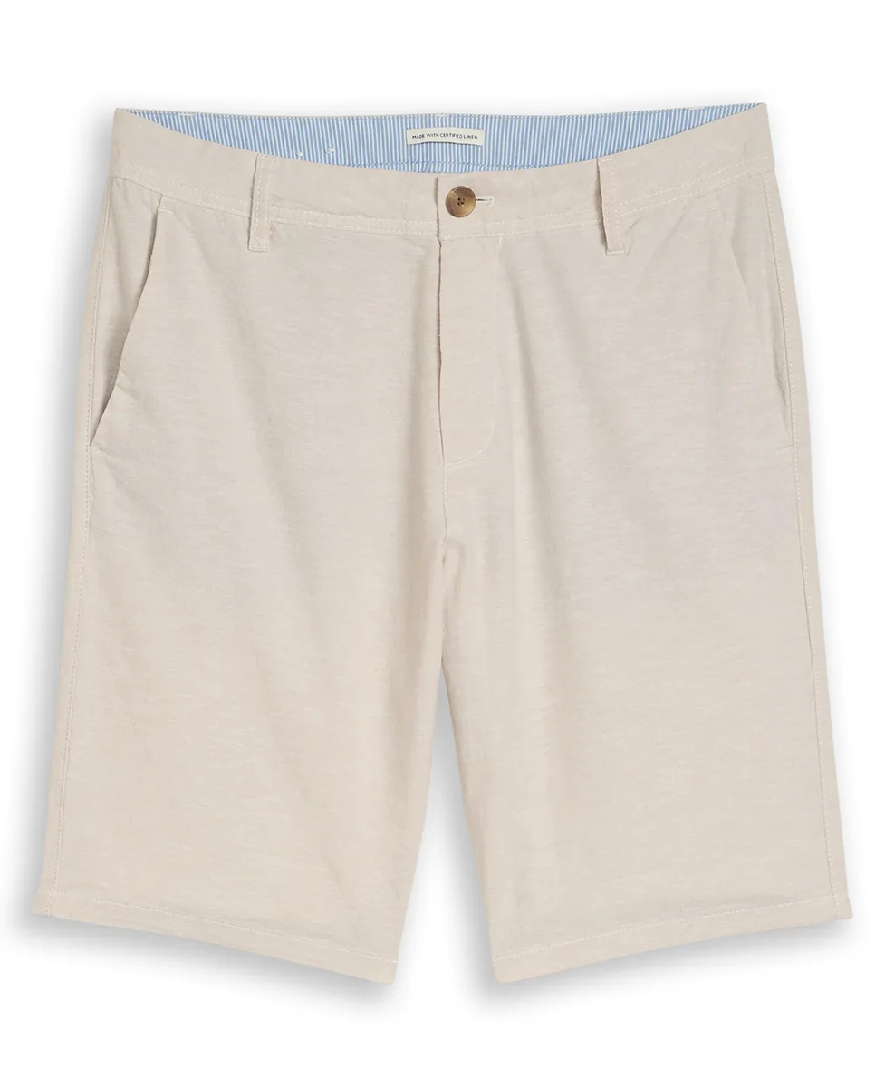 Šorc je opremljen zatvaranjem na dugme i rajsferšlus, te praktičnim kosim bočnim i zadnjim džepovima. Bež chambray nijansa sa melange efektom daje mu prirodan i sofisticiran izgled koji se lako uklapa uz različite stilove. Idealan je izbor za proljeće i ljeto, posebno kada tražite lagan i prozračan komad za cjelodnevno nošenje.