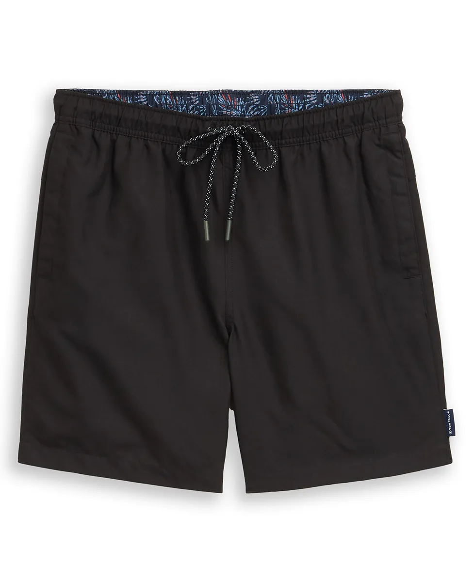 Tom Tailor muški šorc za kupanje u crnoj boji, regular fit kroja sa elastičnim pojasom i vezicom. Lagan, brzosušeći materijal sa recikliranim vlaknima i bočnim džepovima – idealan za ljeto.