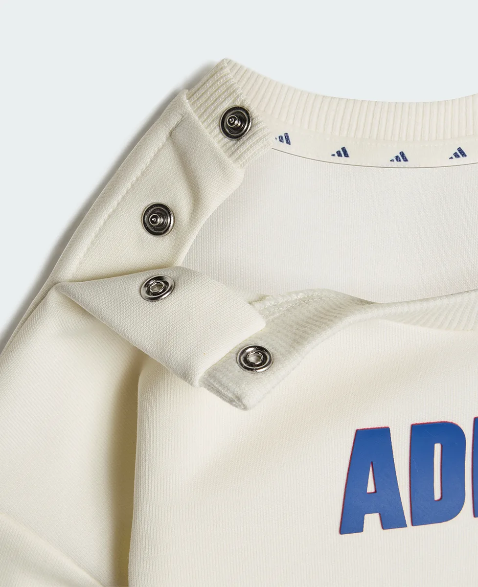Komplet je izrađen u regular fit kroju koji omogućava lako kretanje, dok srednje visoki struk na donjem dijelu pruža sigurno i udobno pristajanje. Gornji dio ima rebrasti okovratnik koji doprinosi boljem prijanjanju i modernom izgledu. Materijal od interlock tkanine (59% reciklirani poliester i 41% pamuk) mekan je na dodir i ugodan za cjelodnevno nošenje.