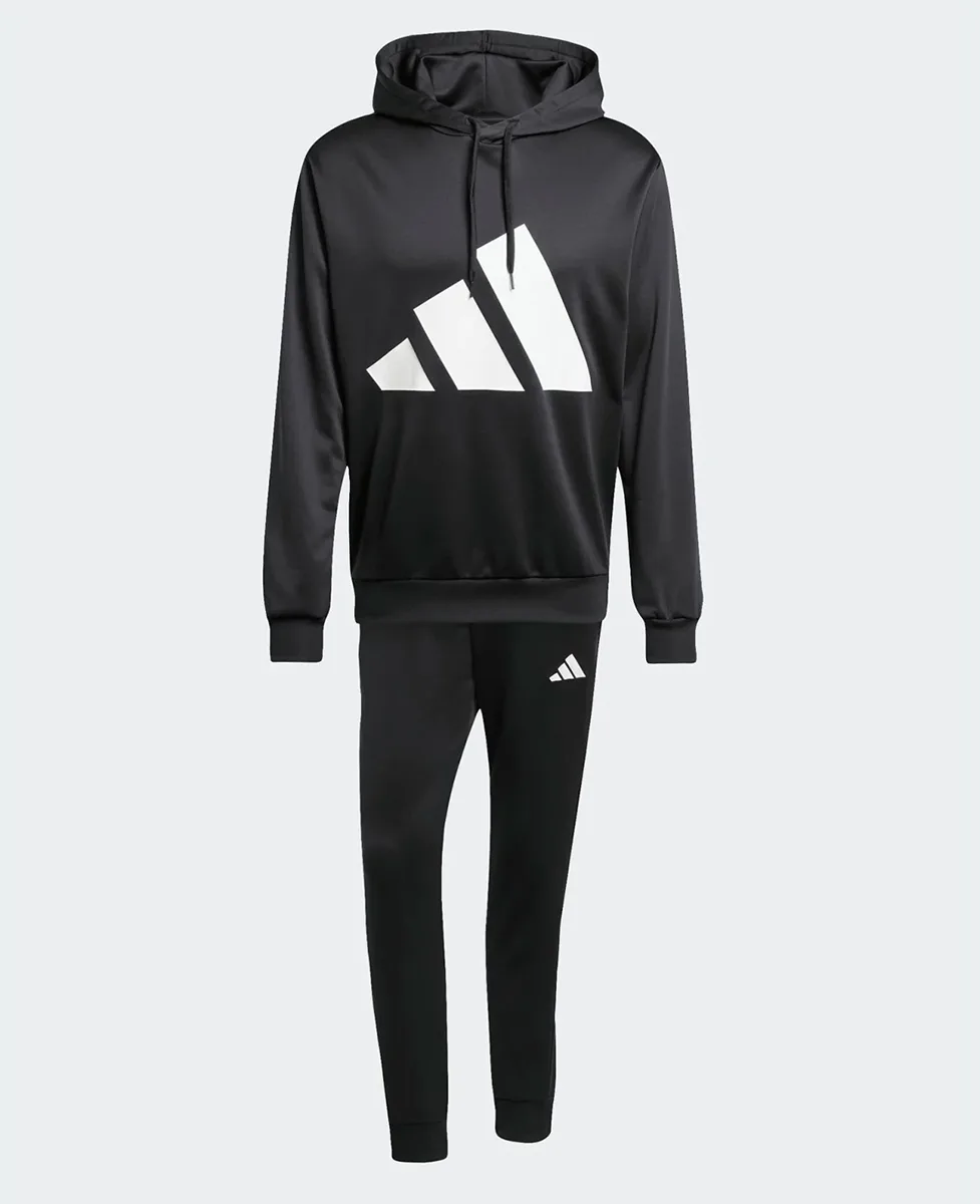 Adidas muški sportski komplet pruža udobnost i slobodu pokreta. Napravljen je od mekog French terry materijala (100 % poliester), sa kapuljačom, elastičnim pojasom i praktičnim džepovima za sportski i casual stil.