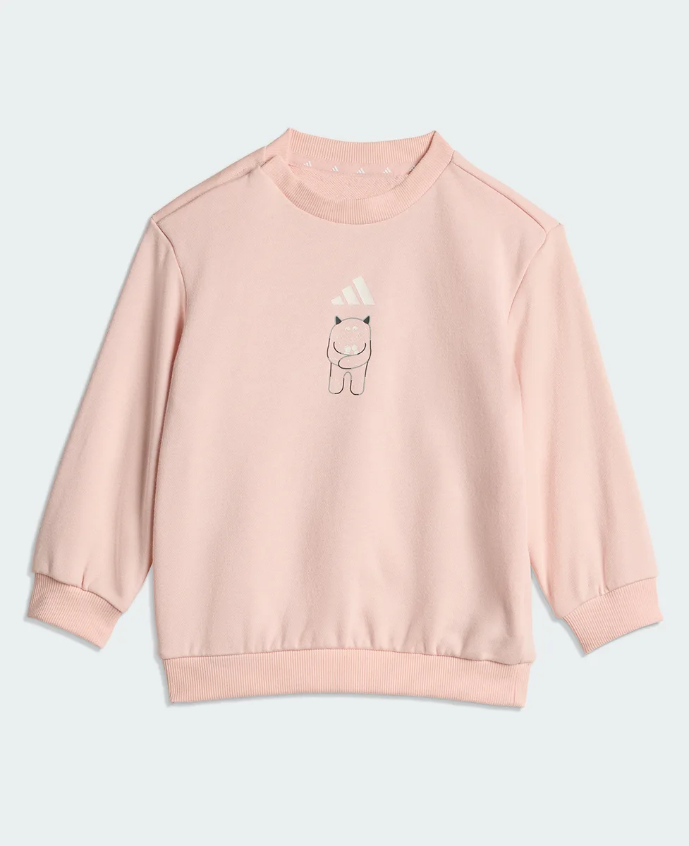 Prepoznatljivi Adidas 3 Bar logo na grudima i nogavici daje sportski pečat, dok zabavan print i dodatak u vidu naljepnica čine ovaj set još zanimljivijim za mališane. Idealan je za svakodnevno nošenje, igru i istraživanje uz maksimalnu slobodu pokreta.