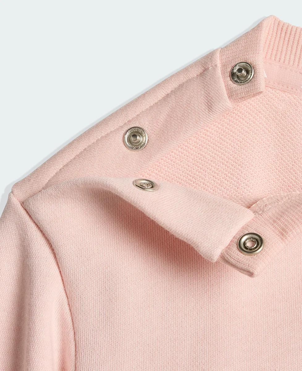 Izrađen od mekanog French terry materijala, set pruža ugodan osjećaj na koži i omogućava slobodno kretanje tokom igre. Širi (loose fit) kroj dodatno doprinosi udobnosti, dok okrugli izrez (crew neck) i srednje visoki struk osiguravaju dobro pristajanje.