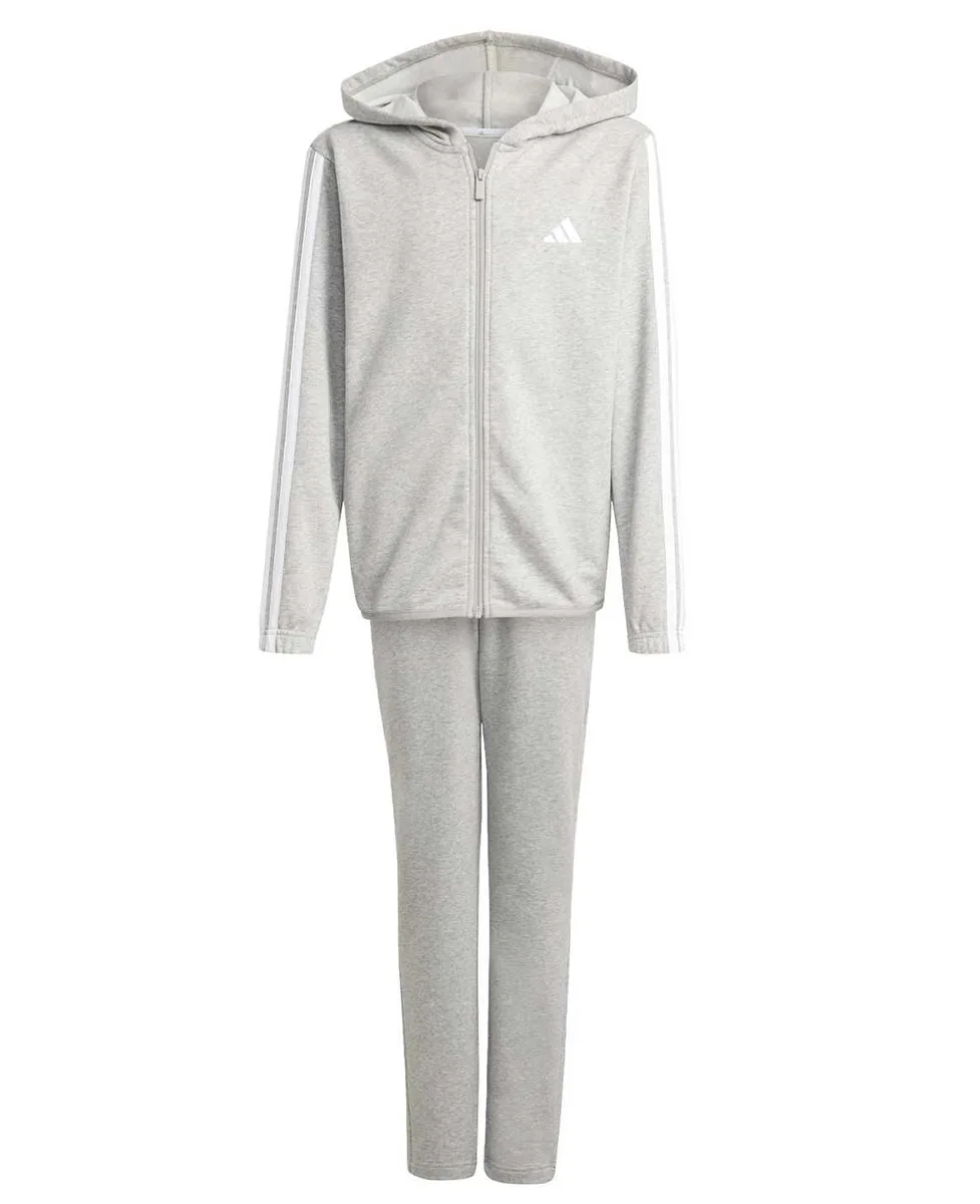 Gornji dio uključuje duksericu s kapuljačom i patentnim zatvaračem cijelom dužinom, što omogućava praktičnost i lako prilagođavanje. Diskretni adidas logo na prsima i prepoznatljive 3-Stripes linije duž rukava daju autentičan sportski izgled. Donji dio čine udobne hlače jednostavnog kroja, koje pružaju slobodu pokreta i prijatan osjećaj tokom nošenja.