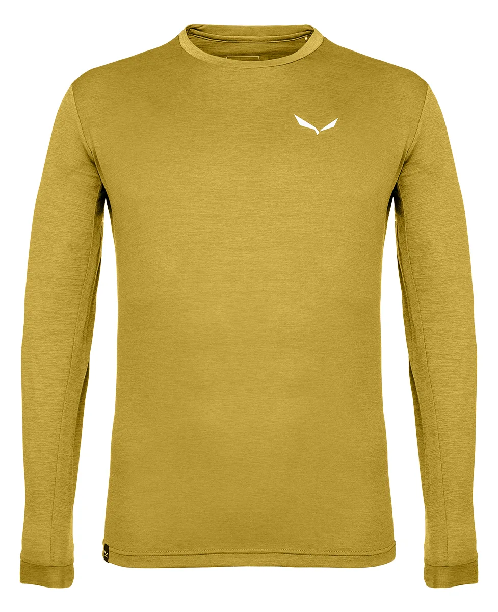 Salewa Puez Melange Dry majica dugih rukava je funkcionalna i udobna majica dizajnirana za alpski treking i planinarenje. Napravljena je od brzosušećeg Dry'ton materijala (100% poliester, 108 g/m²) koji učinkovito odvodi vlagu s kože, zadržavajući vas suhim i sprječavajući prehlađenje, posebno tokom pauza ili nakon dolaska na odredište. Kroj majice je regular fit, što znači da nije pretijesan, ali je dovoljno prilagođen tijelu da omogući dobru mobilnost i udobnost.