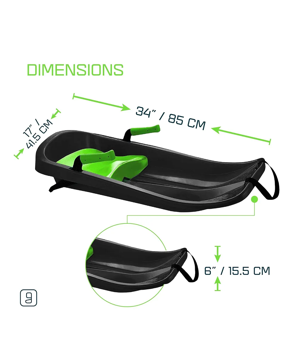 Gizmo Riders Tron su lagane i izdržljive sanke modernog dizajna, idealne za djecu od 3 godine i više. Opremljene su ergonomskim sjedištem s povišenim naslonom i mekanim ručkama kočnica s obje strane za sigurno i lako upravljanje. Izrađene od kvalitetnog HDPE materijala, otporne su na niske temperature i imaju nosivost do 50 kg.